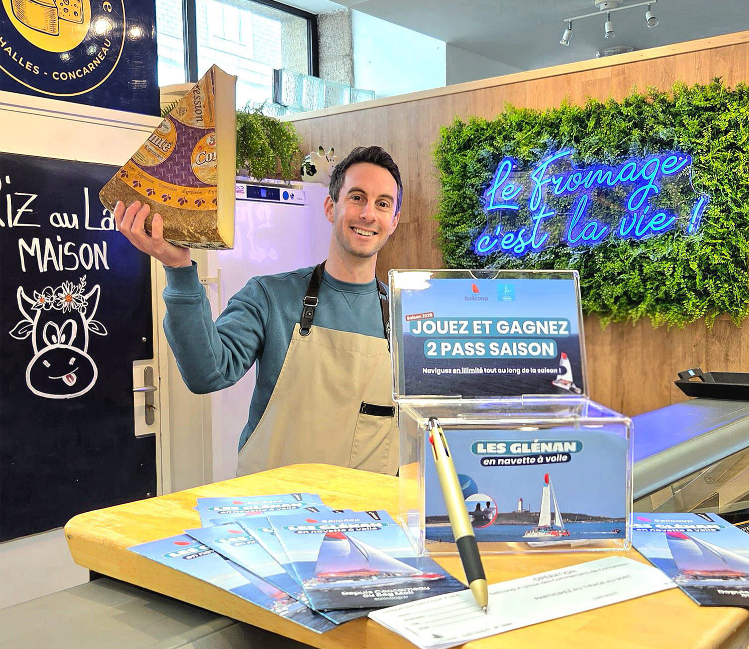 Durant toute la durée de l’opération, pour tout achat effectué chez un commerce partenaire, les clients recevaient un bon de participation pour tenter de remporter un pass illimité pour deux personnes, valable sur toute la saison 2026 sur la ligne Concarneau < > les Glénan.